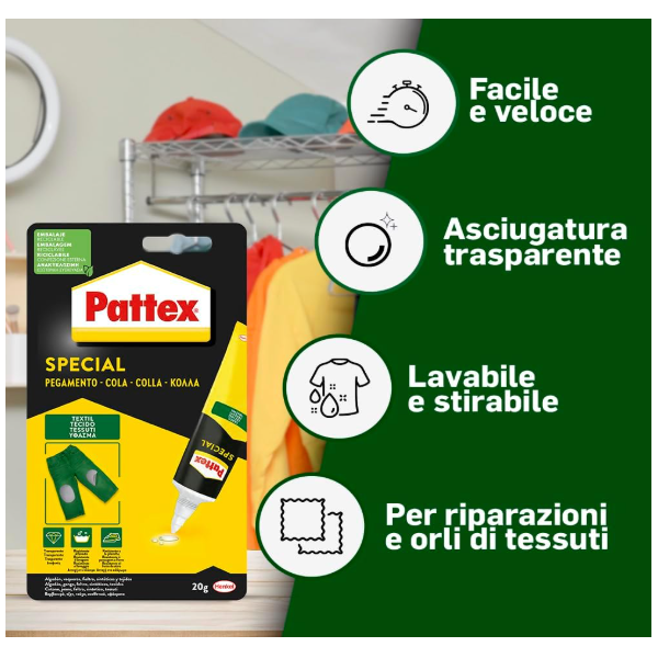 Pattex Special Tessuti Adesivo, Colla lavabile e stirabile ad asciugatura rapida, Colla tessuti ideale, 20g