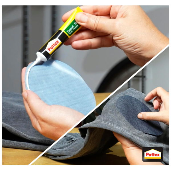 Versatile – Pattex Special Tessuti è una colla per tessuti permanente di alta qualità ideale per cotone, jeans, lino, feltro e sintetici, persino combinati con legno, cuoio e metallo